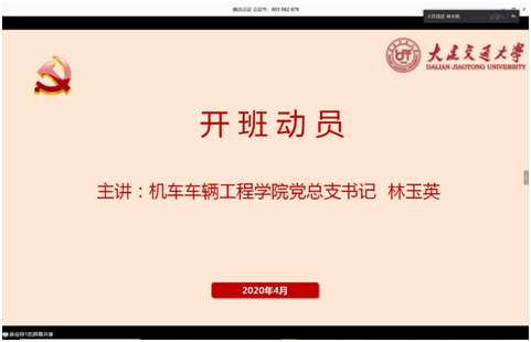 2020年4月1日下午2点,机车车辆工程学院第8期发展对象和第68期入党积极分子培训班开班仪式通过腾讯会议平台顺利召开。开班仪式由院党总支副书记麻会存老师主持,院党总支书记林玉英老师、全体辅导员以及培训学员参加会议。