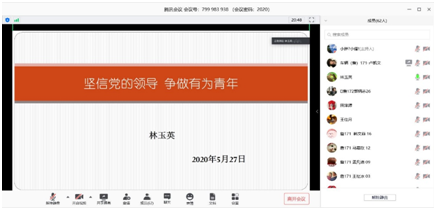 党总支书记林玉英通过腾讯会议给2017级詹天佑班全体学生上题为“坚信党的领导,争做有为青年””形势与政策课。
