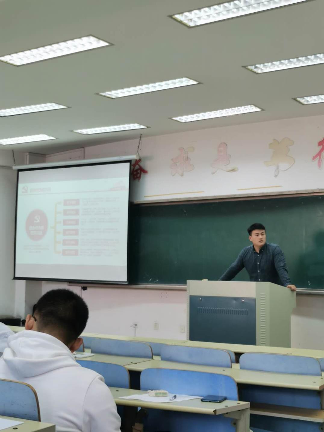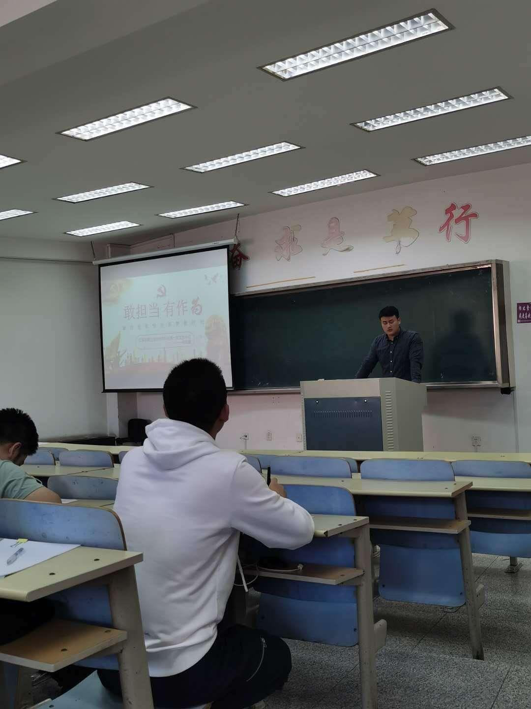 10月 7日下午 14:20,机车车辆工程学院第 69期入党积极分子培训班第五讲在本部实验馆 S-233教室展开,本次培训由机车车辆工程学院本科生第一党支部书记吴永鑫老师主讲,内容为《敢担当 有作为 筑梦新时代 》,旅顺口校区的学员通过腾讯会议平台参与了此次培训。
