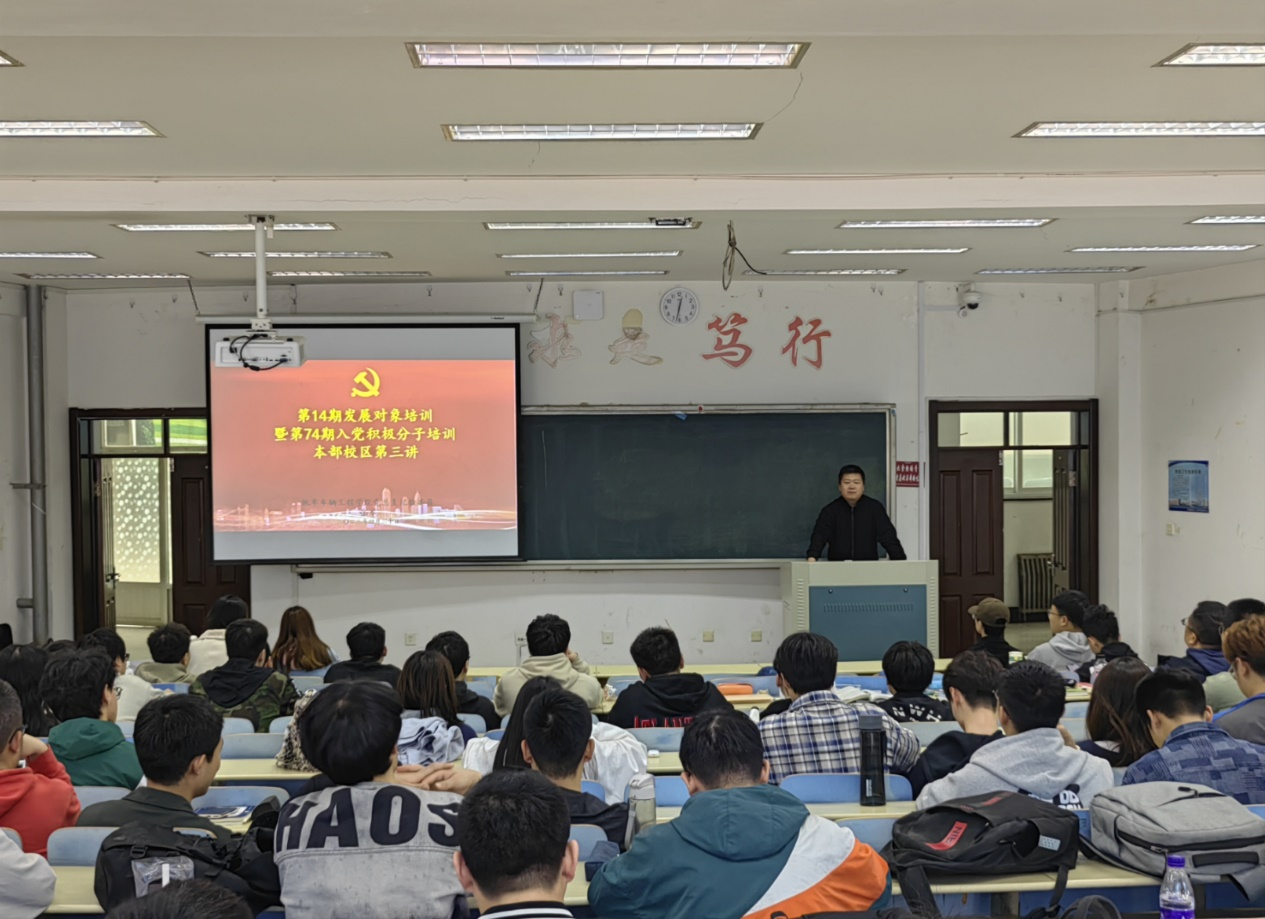 4月20日下午,机车车辆工程学院第14期发展对象暨第74期入党积极分子培训班本部校区第三讲在实验馆S-232举行,本次培训由机车车辆工程学院党总支纪检委员、副院长张军主讲,主题为《党风党纪廉洁教育》。