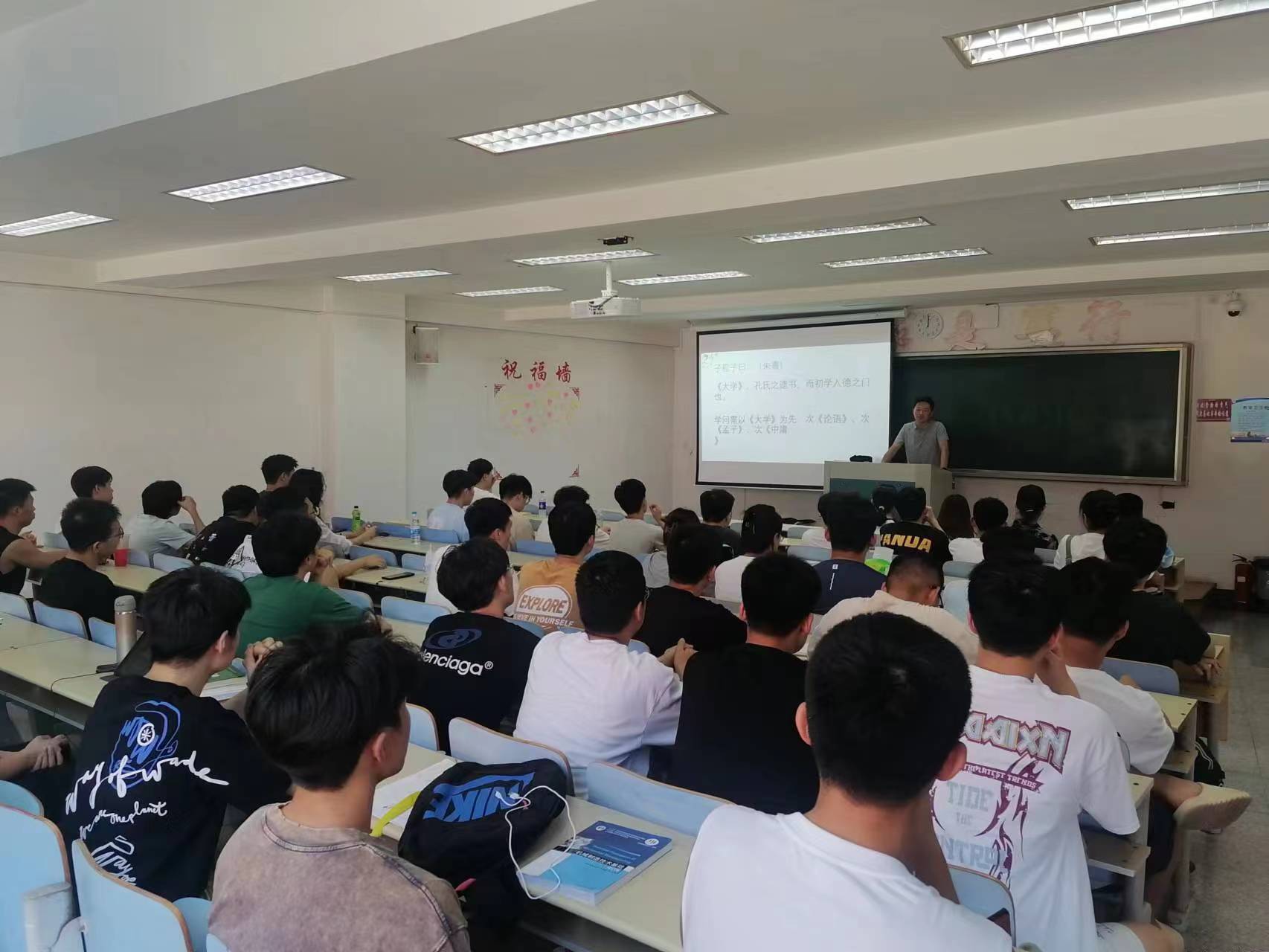 授课过程中,赵俊凯老师对《大学》中明明德、亲民部分进行了详细解读,倡导大家要明白万事万物的道理,培养追求伟大品格,将个人品行与社会主义核心价值观相适应,传承优秀传统文化,坚守中华文化立场不动摇,推进文化自信自强,铸就社会主义文化新辉煌。