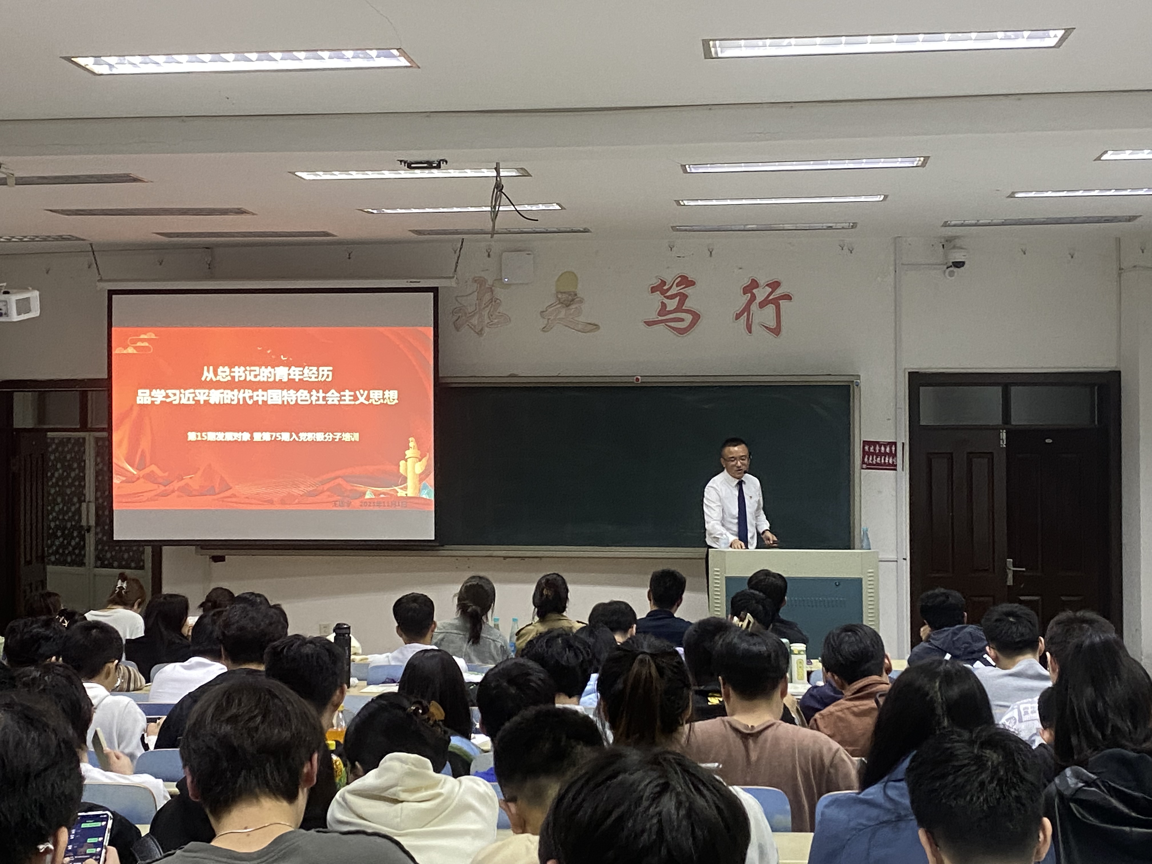 11月1日晚上,机车车辆工程学院第15期发展对象培训暨第75期入党积极分子培训班本部校区第七讲在实验馆S-232教室展开,本次报告由马克思主义学院王建宇主讲《从总书记的青年经历品学习近平新时代中国特色社会主义思想》,本部校区学员参与了此次培训。