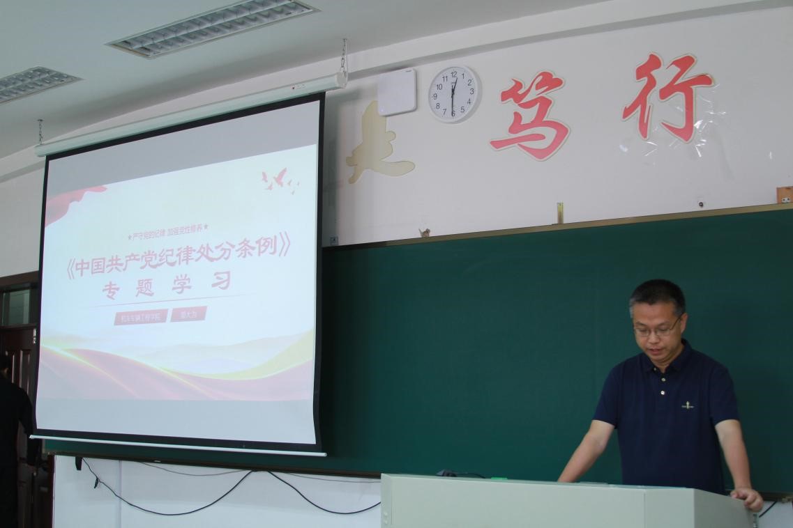 郭大为围绕《中国共产党纪律处分条例》的修改背景和要求、重要内容及学习重点进行了解读,并以形象生动的例子帮助学员理解其中的内涵。他强调,作为一名将要入党的同学,要自觉提高思想政治素质,坚定理想信念,坚决对违背党章党纪的行为说不。
