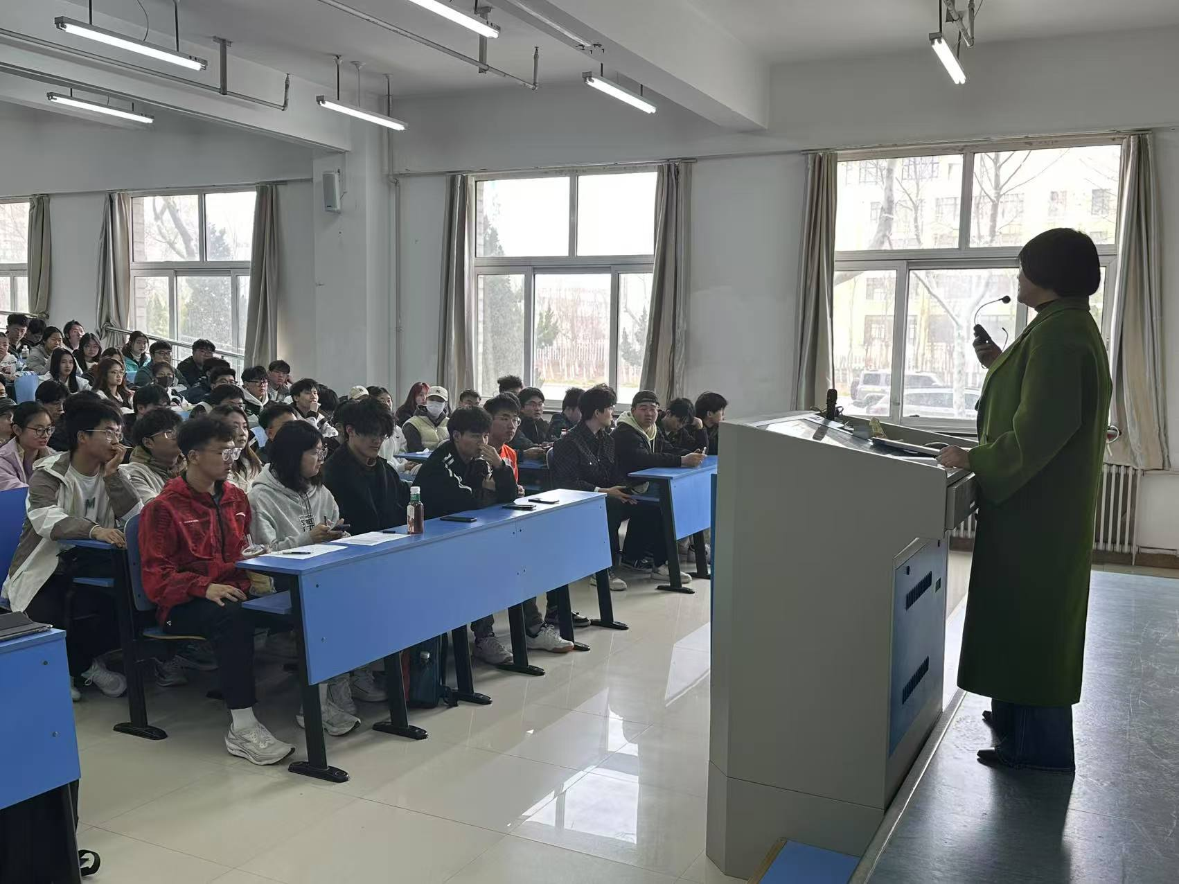 授课过程中,郭爽通过提问大家的入党动机,鼓励同学们上台讲述——入党动机是内心深处对信仰的执着追寻,是灵魂深处对责任的主动担当,是生命深处对使命的庄严承诺。它是渴望在党的旗帜下,以忠诚为笔,书写对人民的赤诚热爱;是期望在党的引领中,以奉献为墨,绘就为民族复兴的壮丽画卷;是立志在党的征程里,以奋斗为纸,镌刻为国家富强的不朽功勋。