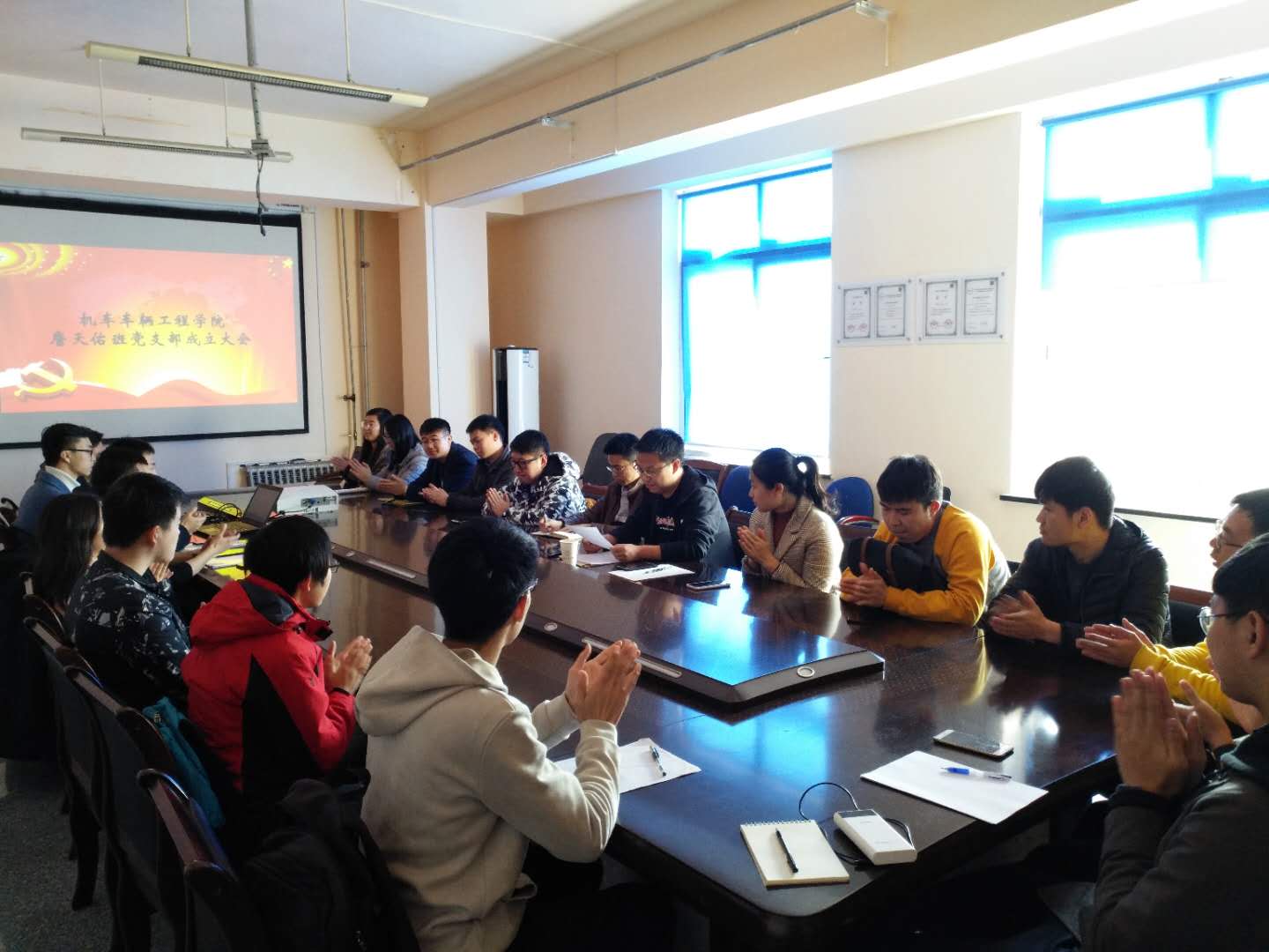 3月27日下午2:30,机车车辆工程学院詹天佑班党支部成立大会在本部校区实验馆612会议室召开。学院党总支副书记麻会存、2017级辅导员郭大为、2015级辅导员赵琪老师和詹天佑班全体学生党员出席本次大会。会议由郭大为老师主持。