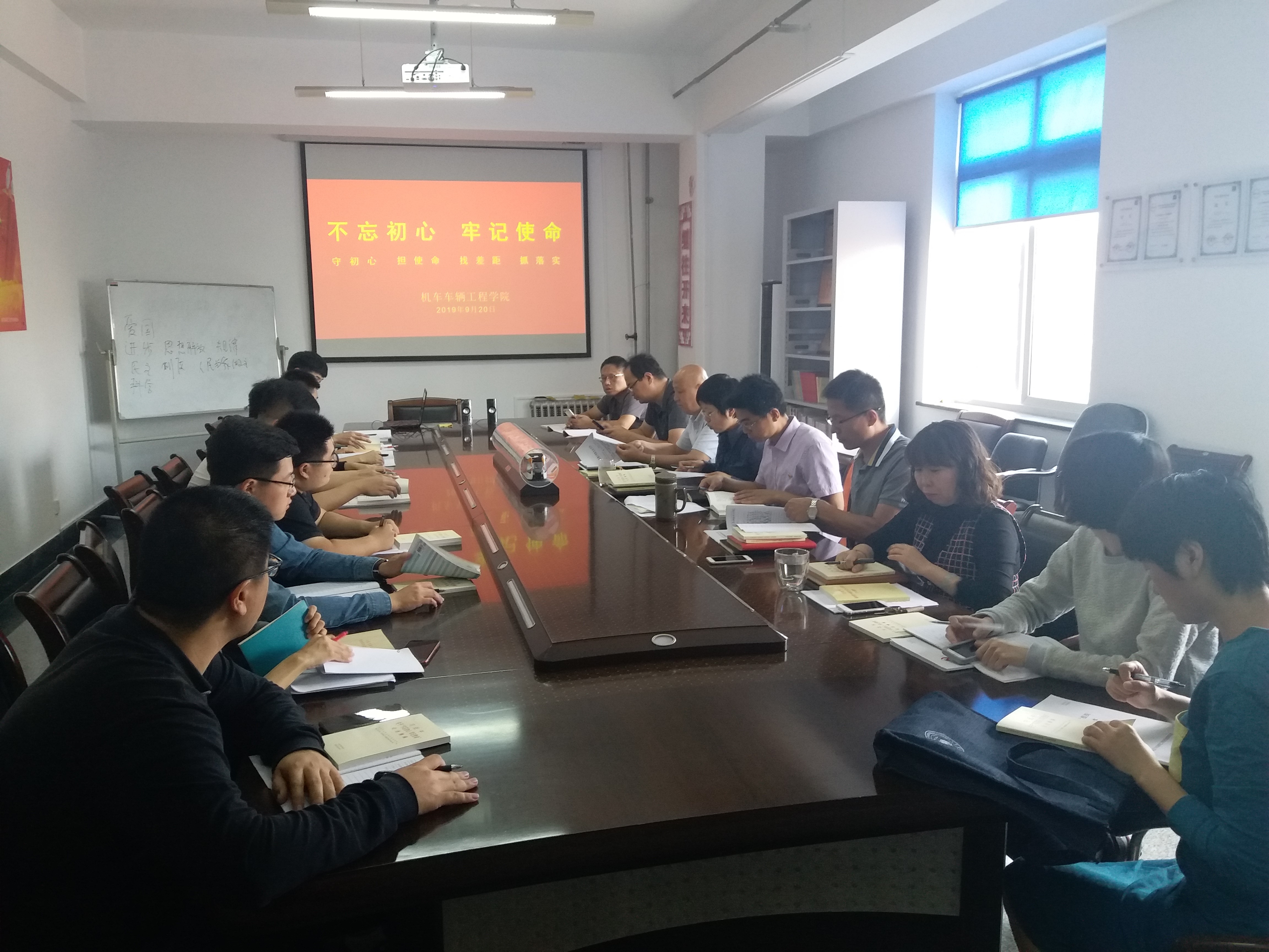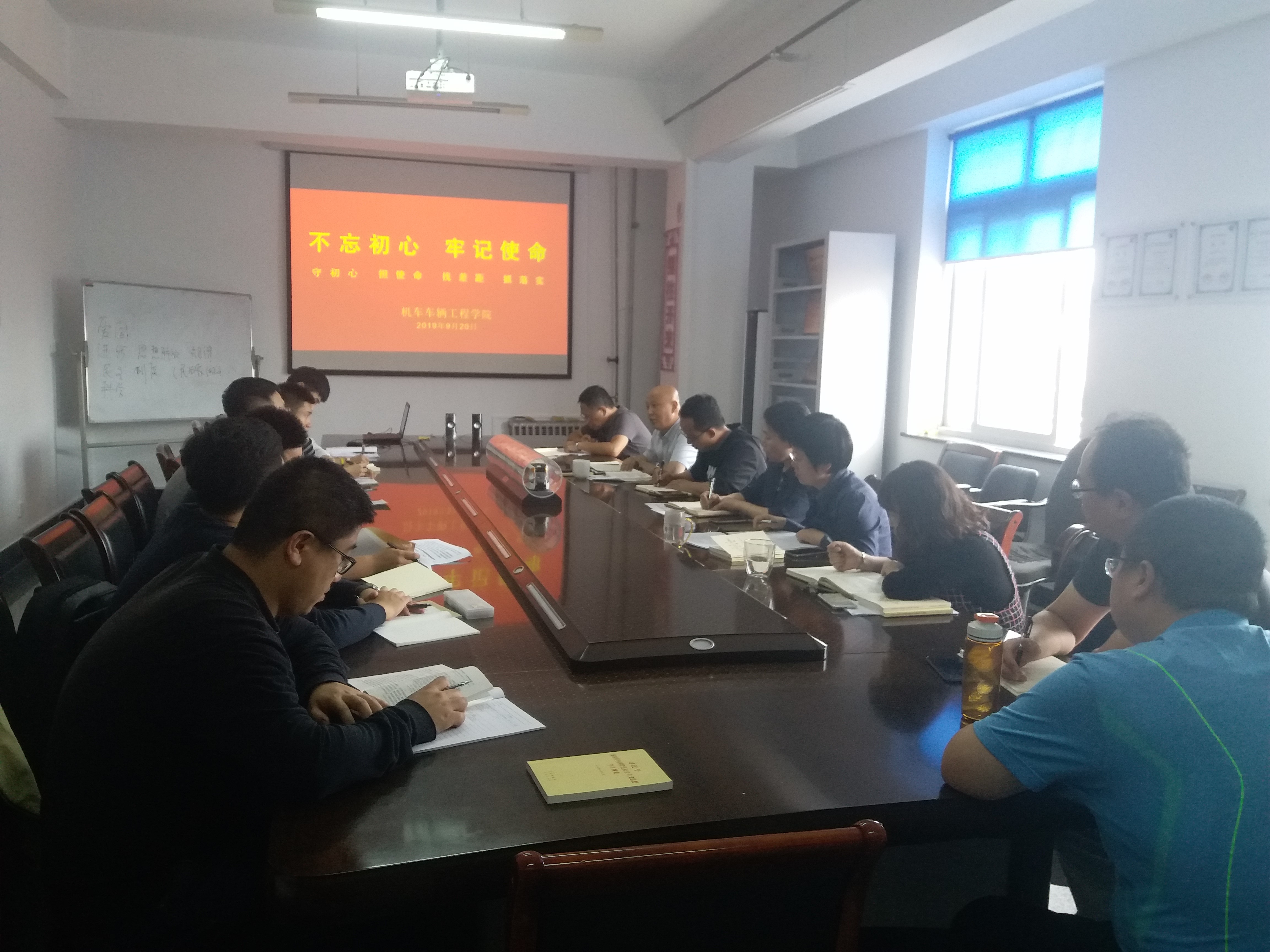 下午14点,机车学院继续开展研讨会。党总支书记林玉英的讲话从做事要有明确的目标,要努力提升个人修养,在工作中要展现无私忘我地精神以及个人工作能力的提升等方面,对每一位党员都提出了新的要求。随后,机车学院院长费继友在讲话中谈到,第一,要通过努力学习来提升自己能力,提高党员自身底线思维的能力,从而创办特色学院;第二,车辆工程专业是我们学校的顶梁柱,要不断增强改革创新能力,以创新性思维来引领优势学科建设;第三,要不断增强和群众沟通的能力,及时了解教师与学生的需求。最后,全体领导班子,辅导员与党支部书记一同观看了“不忘初心