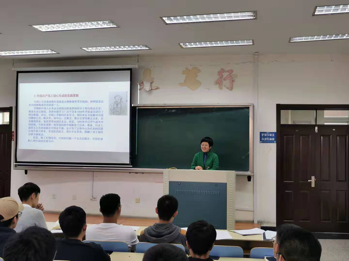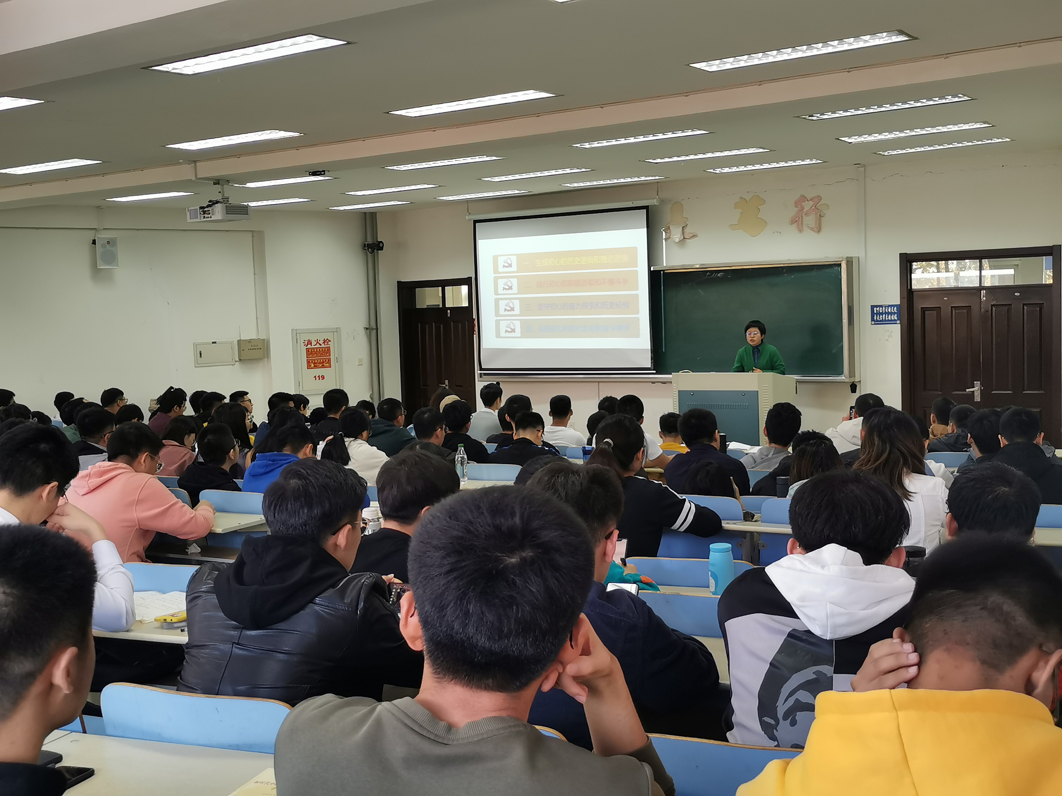 林书记围绕“生成初心的历史逻辑和理论逻辑、践行初心的积极进取和不懈斗争、坚守初心的奋力探索和历史经验以及弘扬初心的时代坐标和奋斗要求”四个方面展开讲述。首先,林书记回顾了1800-1900的历史,结合历史背景,我们深刻地体会到:近代中国的历史是一个从盛到衰的苦难历程,实现民族复兴和人民解放是中国人民最大的渴望和追求。随后,我们明白,践行初心,就是为民族谋解放、为国家谋富强。林书记深情地重温了习近平总书记的话:“我将无我,不负人民。”中国共产党之所以能取得一次又一次革命性的胜利,是因为我们党始终把人民放在心中,始终把人民的利益放在首位。最后,林书记语重心长地教导我们,大学生党员,应当从身边的同学抓起、从身边的每一件小事做起,积极起到先锋模范作用。