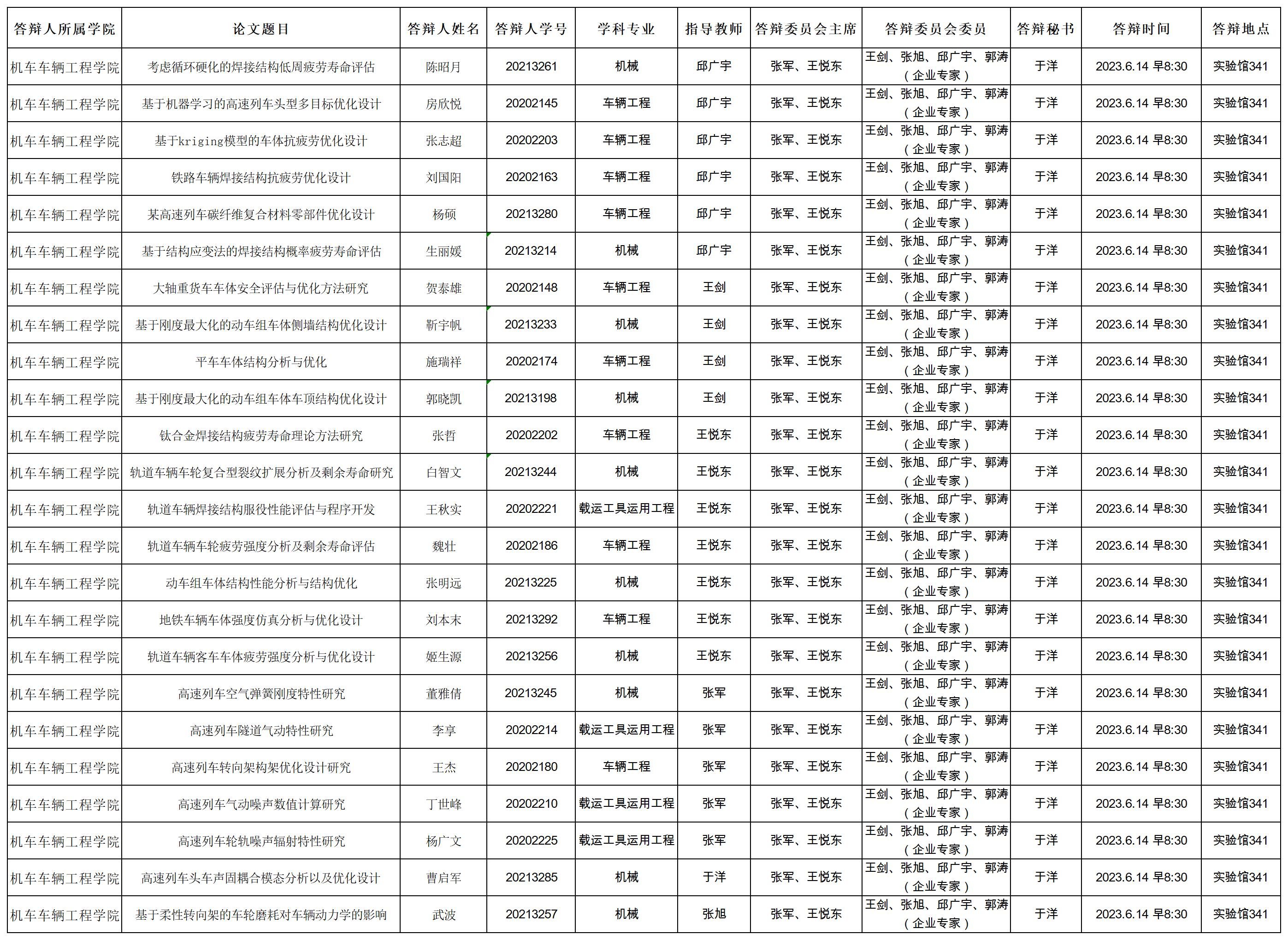 6月14日硕士学位论文答辩公告