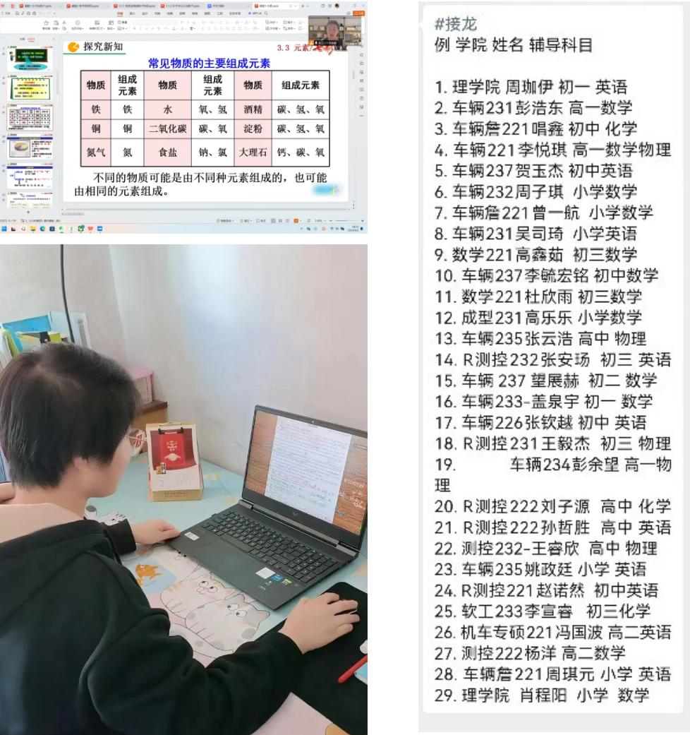 7月中旬开始累计辅导时长一个月,辅导内容涵盖小学、初中、高中阶段的数学、物理、化学、英语等课程。志愿者们通过微信、QQ等线上方式,与有需要的家庭子女进行一对一的课程讲解、问题解答、批改作业以及关爱陪伴、心理疏导。