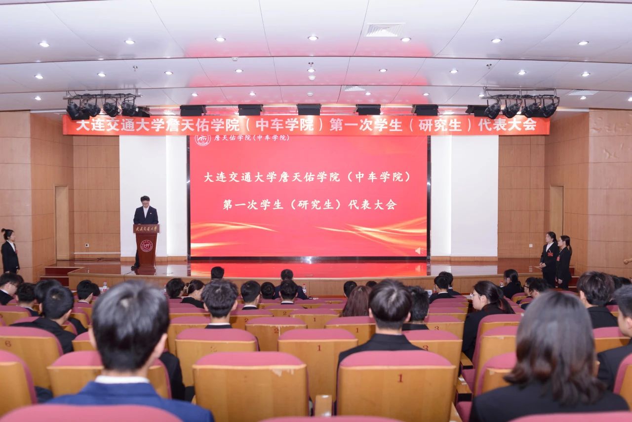 (中车学院)第一次学生(研究生)代表大会在沙河口校区图书馆报告厅开幕。院党委副书记郭大为、院团委书记吴永鑫、辅导员魏磊、辅导员张书领、校学生会主席团成员孙阳以及全体本科生、研究生代表参加大会。参会嘉宾与学生代表齐聚一堂,汇聚青春力量,共绘美好蓝图。