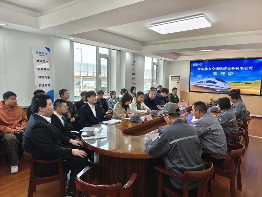 师生代表一行20余人在学院党委副书记郭大为和25届、26届毕业班辅导员老师们带领下,于4月1日走进大连鼎力交通装备制造有限公司,开展以“访企拓岗促就业,产教融合助发展”为主题的实地走访交流活动。此次活动受到了大连鼎力交通装备制造有限公司曲文涛董事长和各部门的热情接待。通过企业参观、校友分享和现场招聘等环节,同学们深入了解了企业发展、行业动态,并与企业就职业生涯发展规划展开互动。