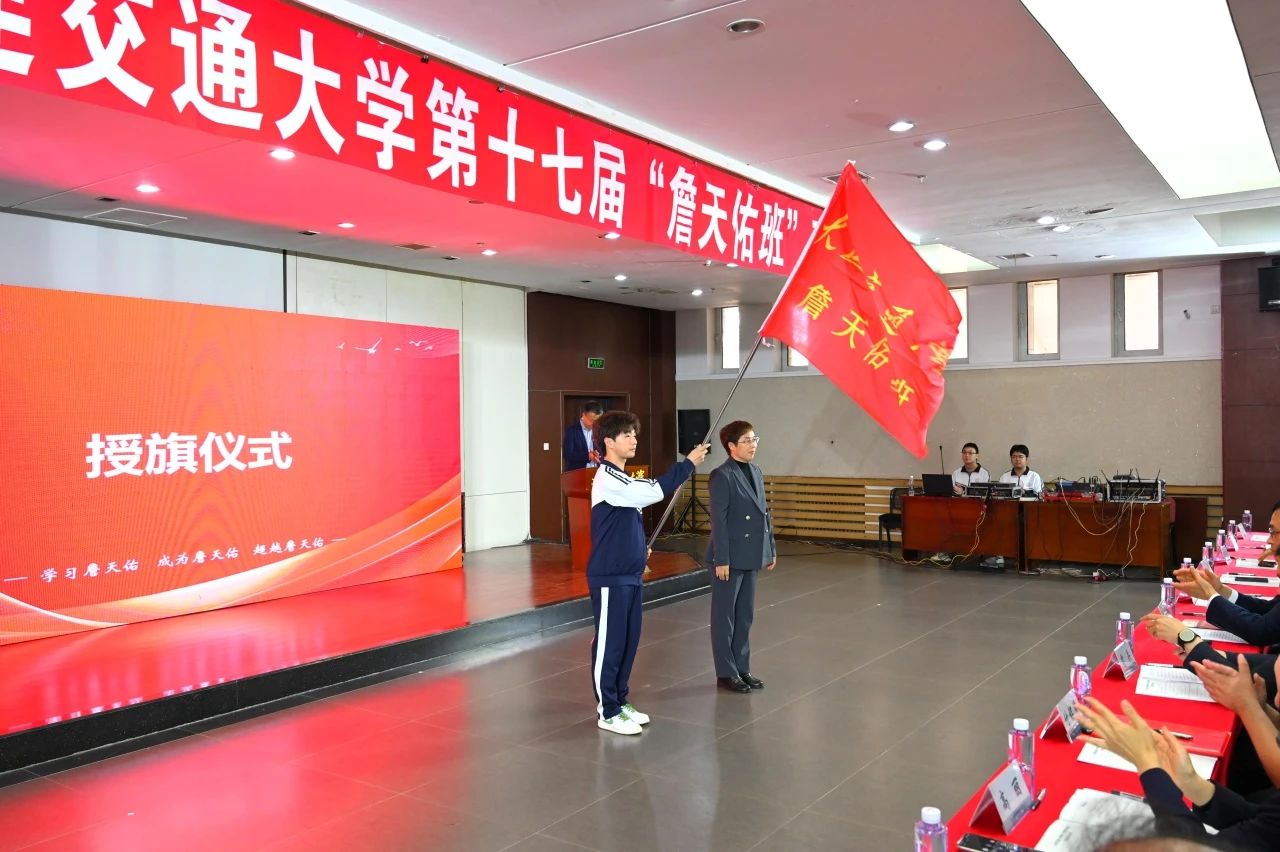 2023级“詹天佑班”班导师李永华为“詹天佑班”授旗