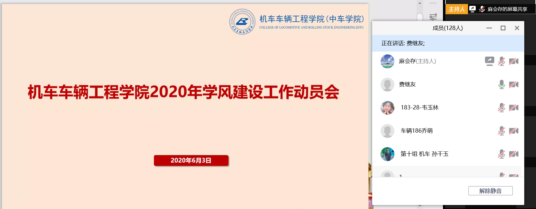 通过腾讯会议召开2020年学风建设工作动员会。学院全体领导班子成员,全体辅导员,本科全体班级班长、团支书参会,会议由主管学生工作书记麻会存主持。