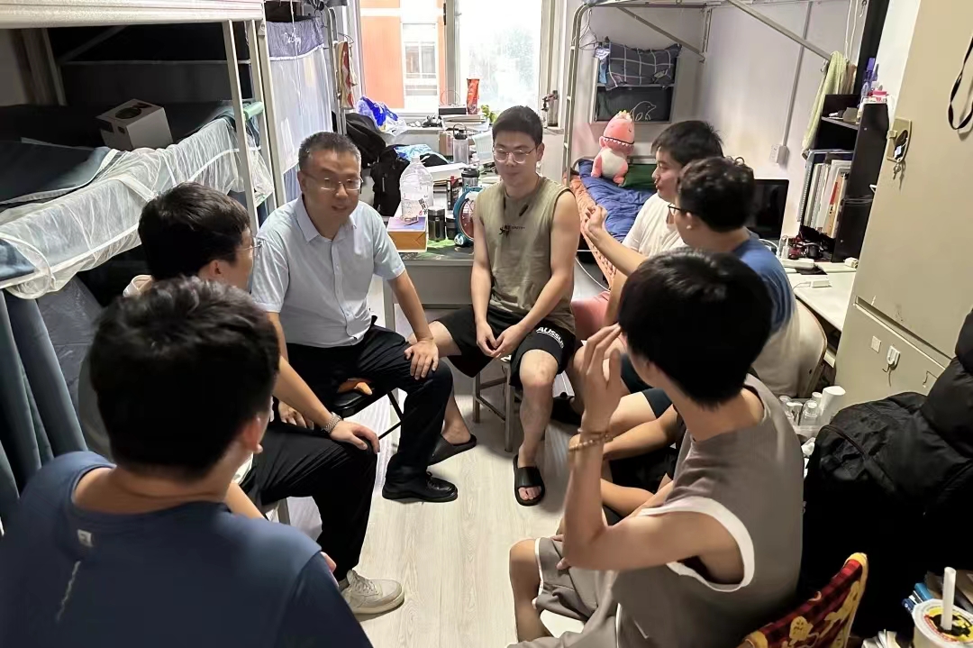 才感盛夏,忽而立秋,学院为每位留校学生送上“秋天的第一杯奶茶”,让学生充分感受到了学院的关怀和温暖。郭大为和两位辅导员询问了留校学生的生活情况、学习进度,为同学们在炎热夏季坚持学习的拼搏精神点赞,嘱咐学生要注意劳逸结合、保持积极的心态,同时更要注意宿舍安全、饮食安全等。在走访宿舍的过程中,师生围坐一起,同学们也反映了一些学习和生活上的问题,学院表示将尽最大努力为大家解决。