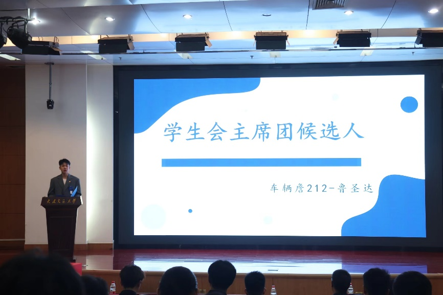 在第六至十一项议程中,主持人分别宣读了第六届学生委员会、第一届研究生委员会常任代表名单,第六届学生会、第一届研究生会主席团候选人建议名单,之后,各位常任代表、主席团候选人依次上台发言。