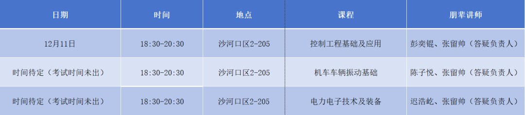 詹天佑班党支部党员讲师团,重点围绕车辆工程专业大三同学们的期末考试科目,帮助大家系统梳理、查漏补缺。第三期具体补习课程安排如下: