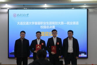 首届大学生职业规划大赛就业赛道决赛在沙河口校区图书馆多功能厅举办。决赛邀请到新东方大连学校副校长马光旭、中铁建设集团华北分公司党委副书记汤强、中车大连机车车辆有限公司人力资源部副部长李铭、中国铁建大桥局一公司人力资源部(党委干部部)部长林君德以及韩国三级