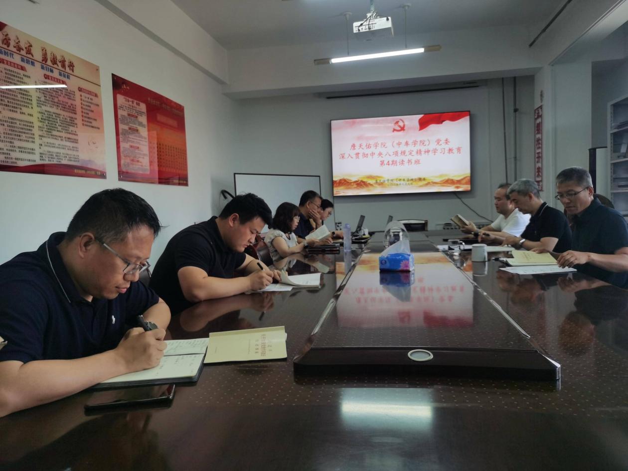 (中车学院)党委在S-612党员活动室开展深入贯彻中央八项规定精神学习教育第4期读书班暨理论学习中心组专题学习会,围绕《习近平关于加强党的作风建设论述摘编》进行学习研讨,党委书记郑帆帆主持会议,学院党委委员、班子成员和科级以上干部参加学习。