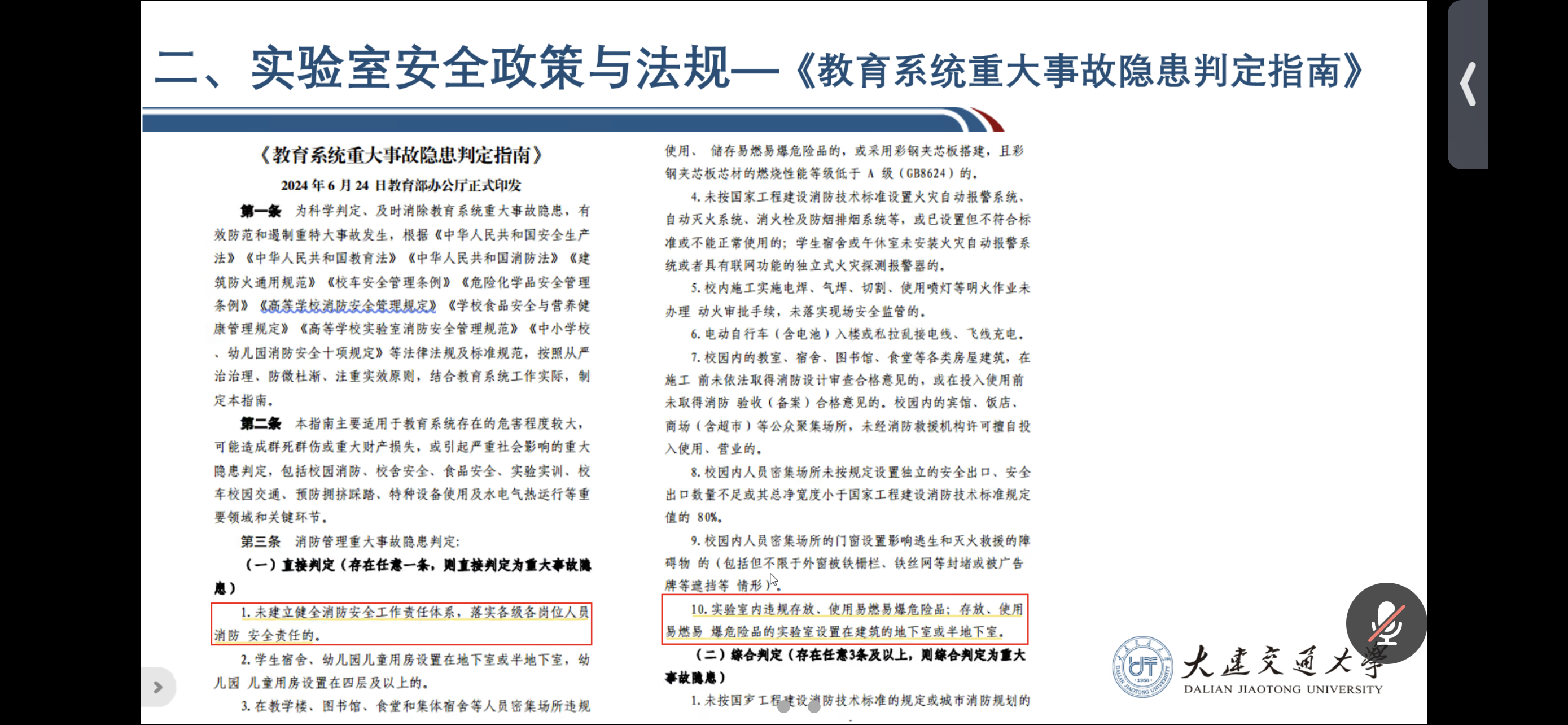 培训重点解读了2019年教育部发布的《关于加强高校实验室安全工作的意见》【教技函(2019)36号】及2024年6月教育部办公厅印发的《教育系统重大事故隐患判定指南》【教发厅函(2024)20号】,明确了重大事故隐患的判定标准,为实验室安全管理划定了清晰红线。