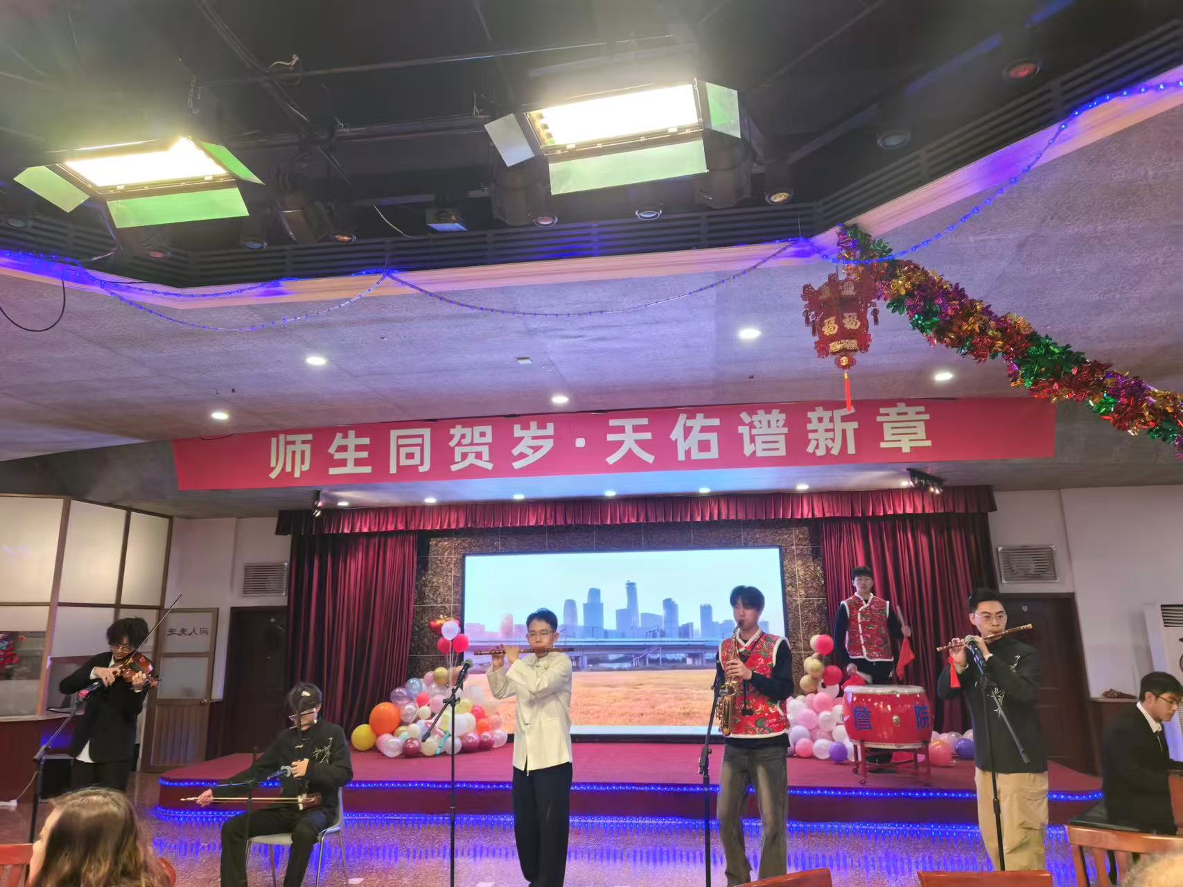 联欢会启幕前,学生代表演奏的《云宫迅音》的空灵旋律如银铃般响起,营造出悠远而梦幻的氛围。随即,《我的祖国》深情的乐声如长江奔涌,奏响对家国的绵长眷恋。两首乐章共同编织出一幅音画交融的壮丽图景,为新年注入了磅礴而温暖的精神力量,奏响了新一年的崭新华章。